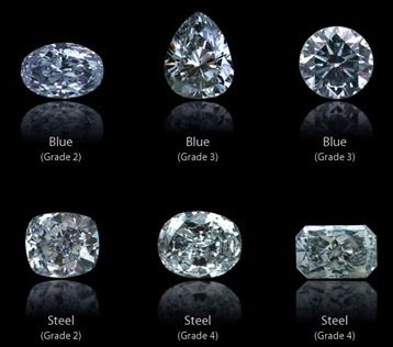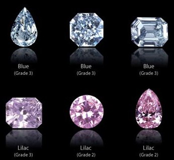 蓝钻:呈淡蓝色、艳蓝色。钻石在形成过程中,吸收微量硼元素,钻石便显天蓝色。