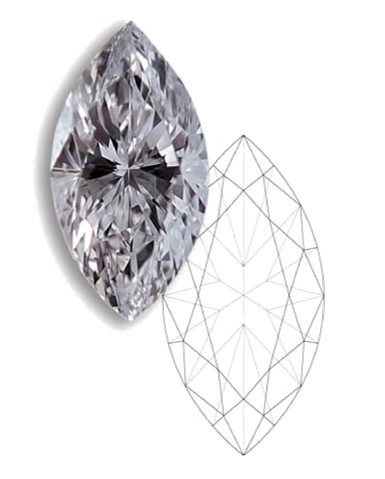 榄尖形切工(Marquise Brilliant Cut): 外形:榄尖形 切工:明亮型/灿烂型 起源:17世纪,法王路易十四时期